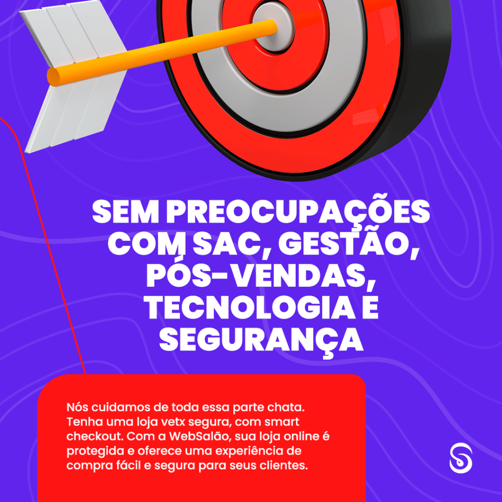 A WebSalão cuida de todos os detalhes relacionados ao atendimento ao cliente, gestão, pós-vendas, tecnologia e segurança. Nossa plataforma oferece uma loja virtual segura, com smart checkout e todas as ferramentas necessárias para proporcionar uma experiência de compra fácil e segura para seus clientes.